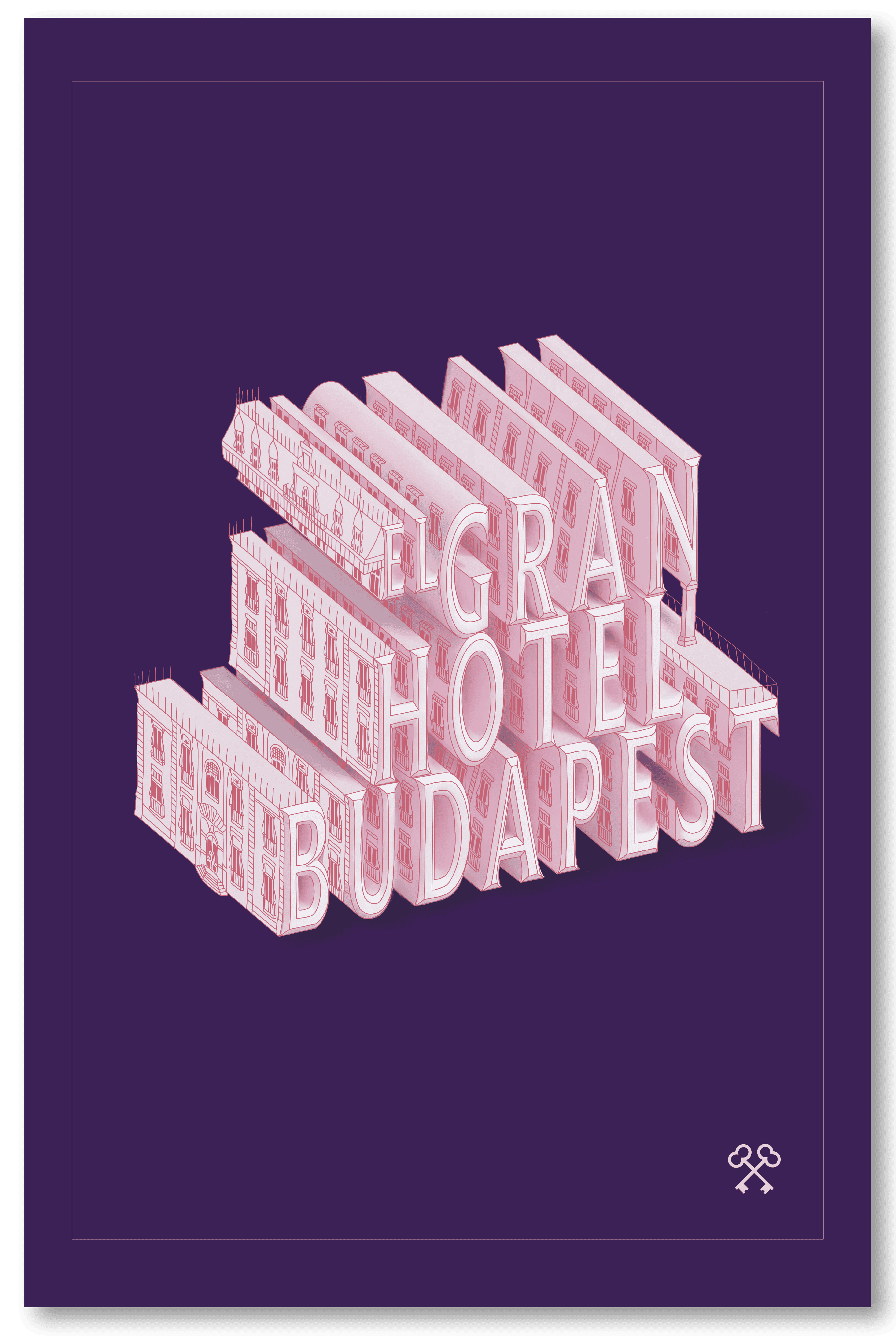 Serie de tres afiches tipográficos inspirados en la estética, narrativa y objetos icónicos de la película The Grand Budapest Hotel.