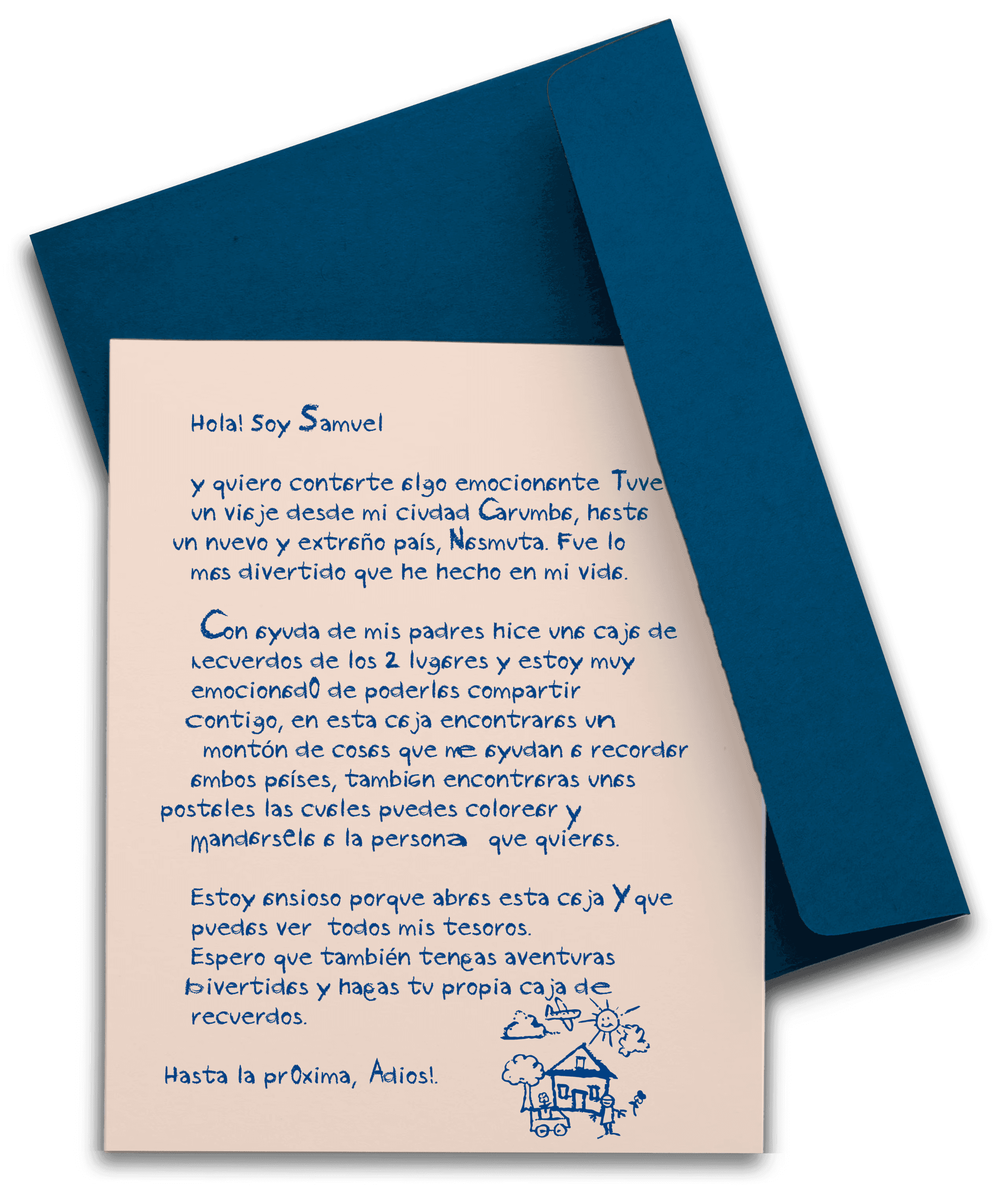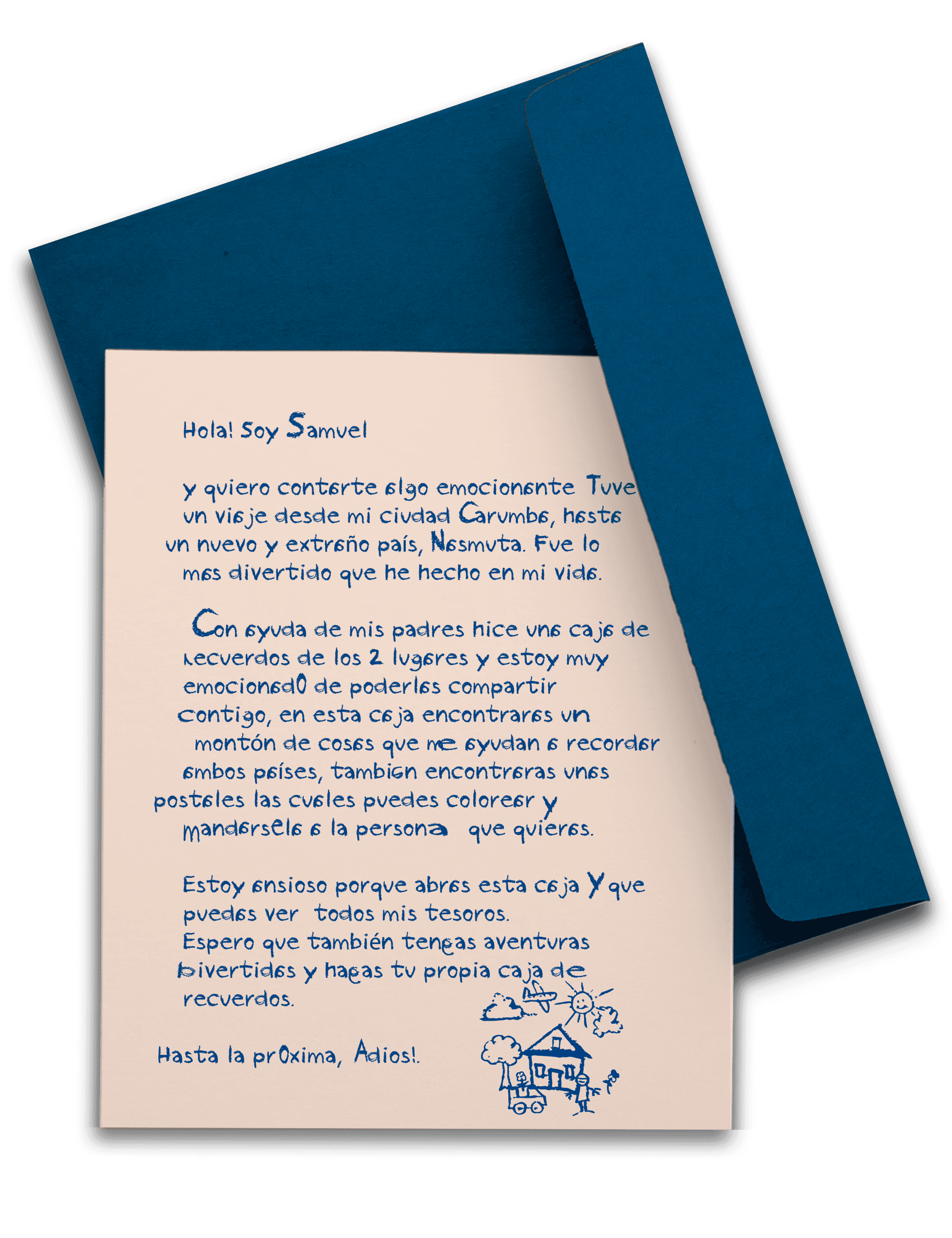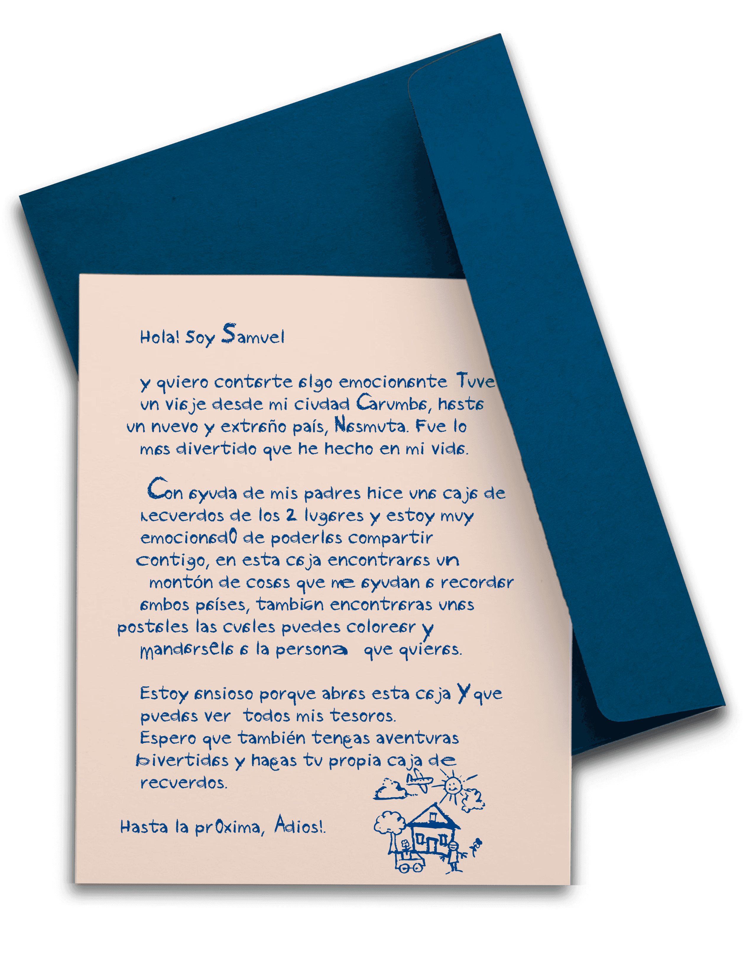 En el cuento, Samuel, un niño de Carumba, viaja a Nasmuta y enfrenta un choque cultural que lo hace sentir lejos de casa. Sin embargo, al abrirse a la experiencia, descubre nuevas partes de sí mismo y llena su memoria de recuerdos y momentos inolvidables.