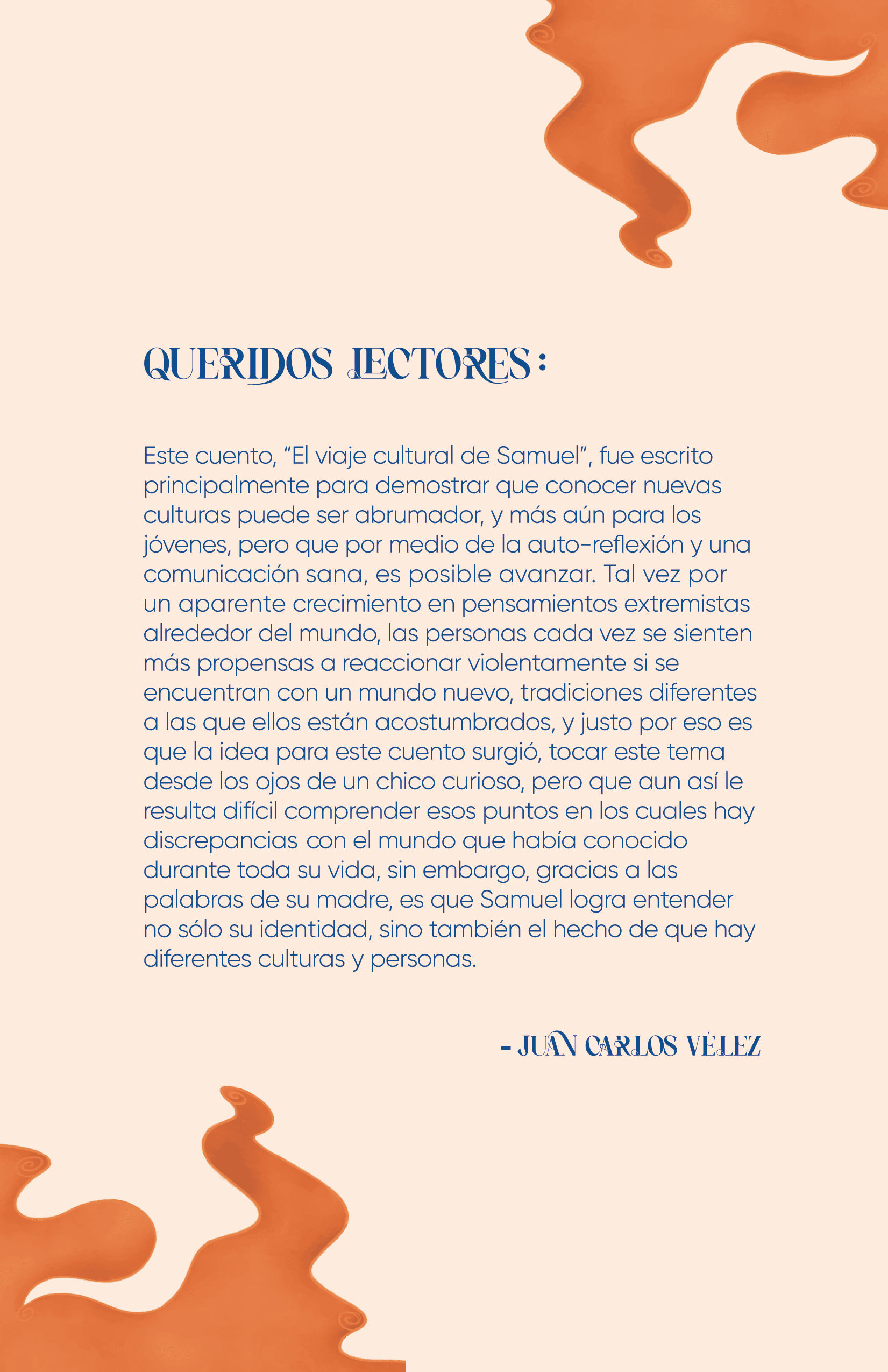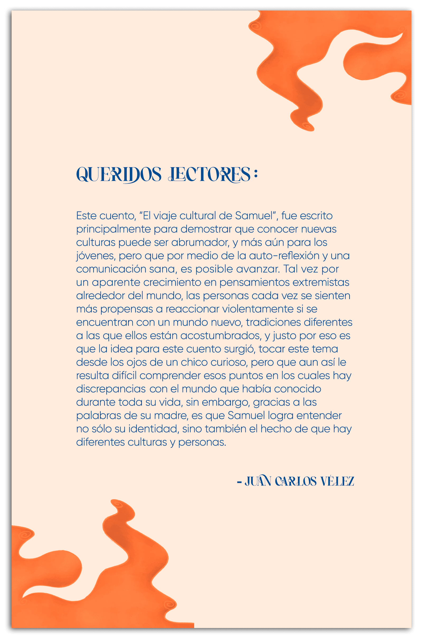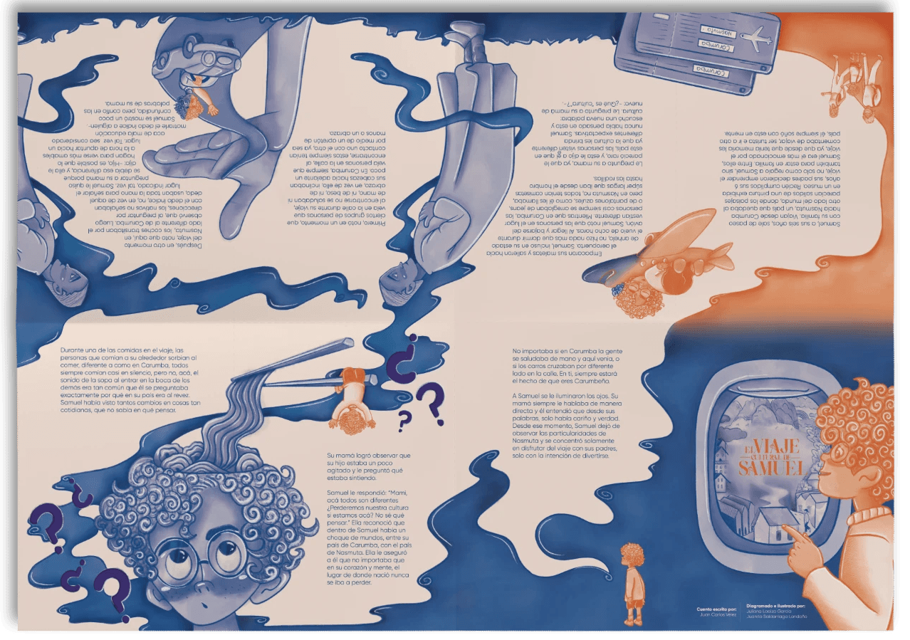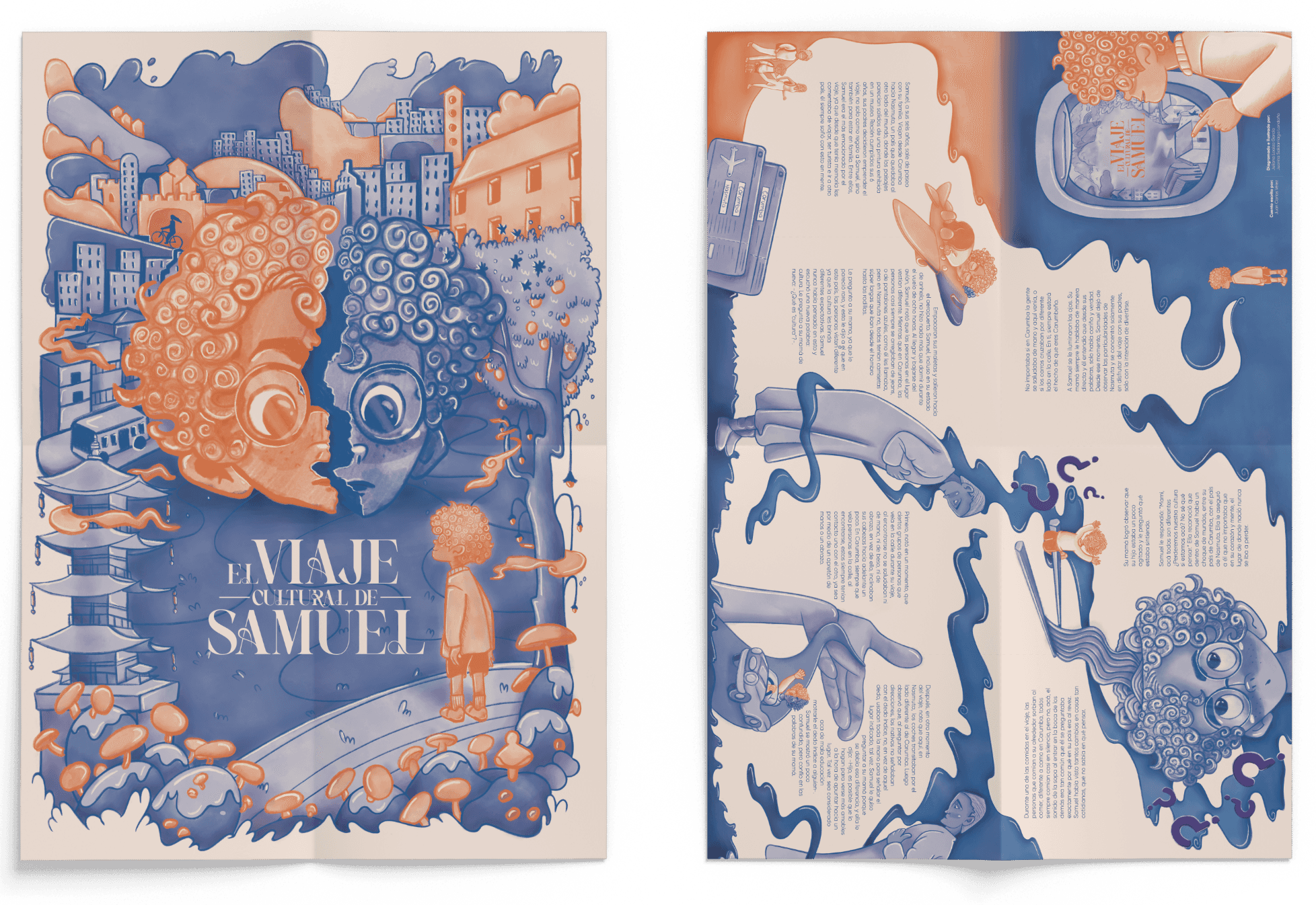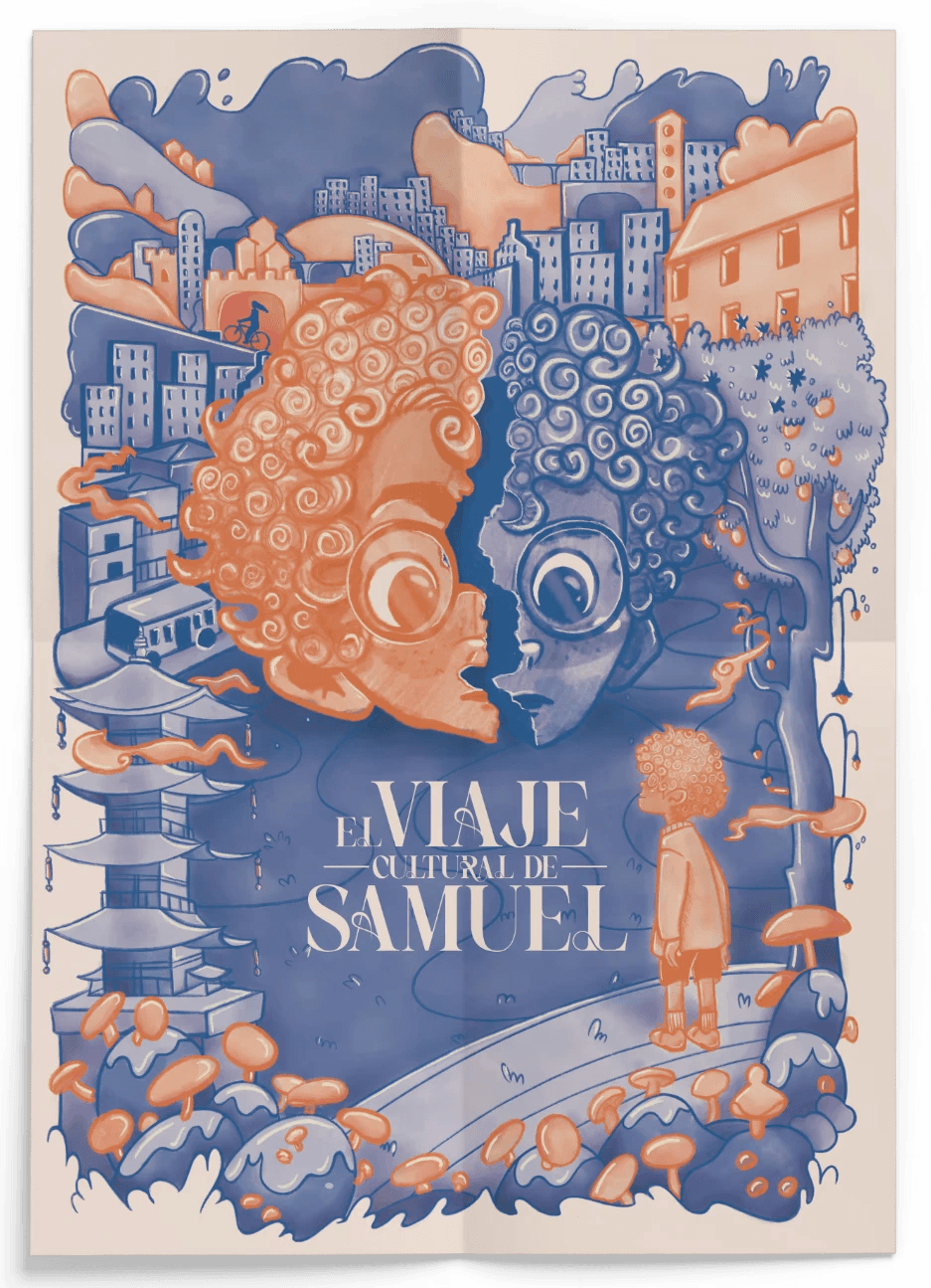 El viaje cultural de Samuel es un proyecto que explora cómo las experiencias vividas transforman la percepción de la cultura en los niños. A través de un cuento plegable que se despliega en un póster promocional, seguimos a Samuel en su travesía hacia Nasmuta, donde descubre que la cultura se siente y se vive.
