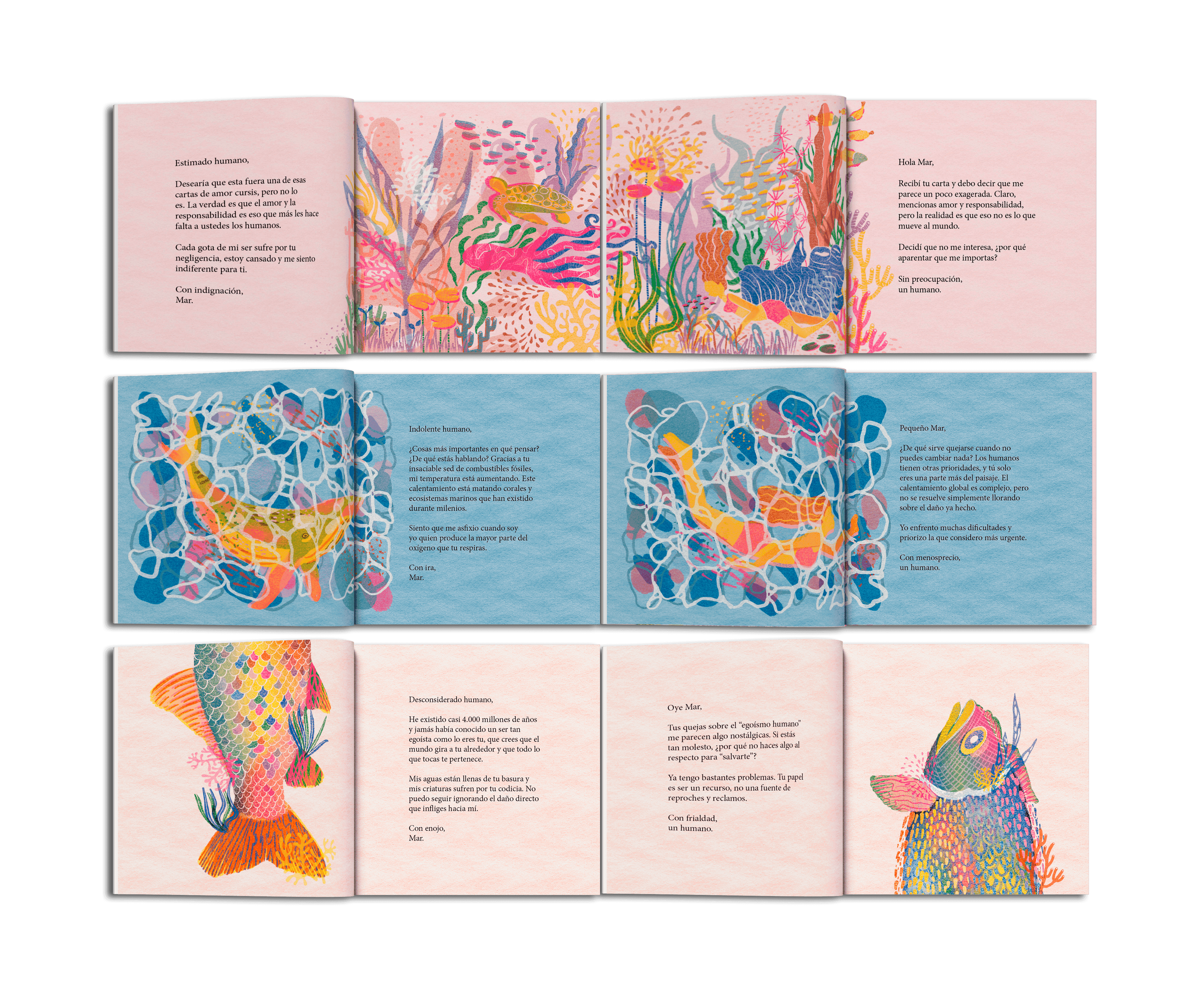 Este proyecto editorial se presenta en un formato plegable que, al extenderse por completo, revela en su reverso el póster promocional del cuento, cuya portada muestra a Samuel frente a su propio reflejo transformado por el viaje.
